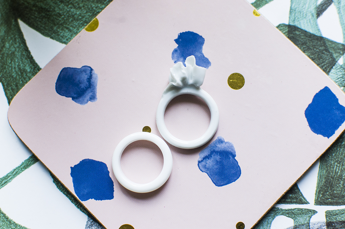 W Pradze, gdzie pojechaliśmy w październiku zeszłego roku, kupiłam sobie sztukę. Małą, białą, porcelanową sztukę, czyli pierścionek. Tak mi się spodobał, że kupiłam bez zastanowienia za miliony monet, wiedząc, że i tak jest za duży i nawet na kciuku ledwo się trzyma. Ale kobieta zawsze potrafi sama siebie przekonać, że kupuje coś ekstra i właśnie tego chce.