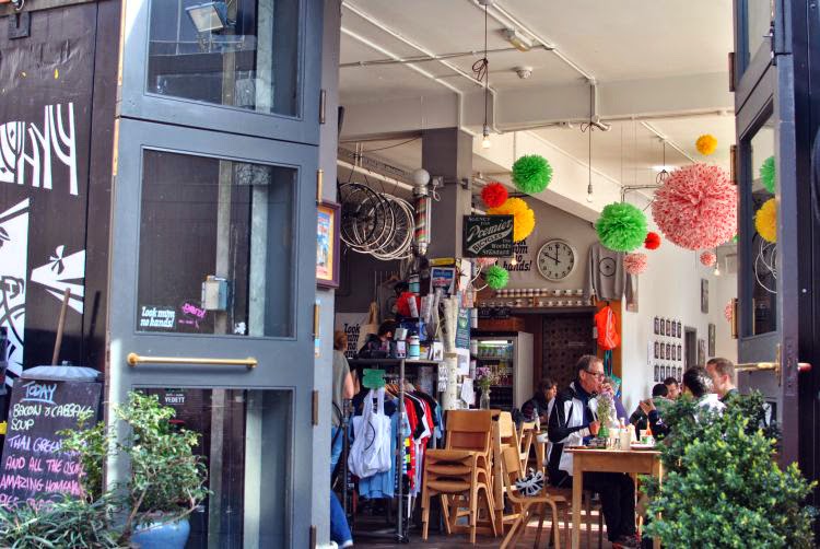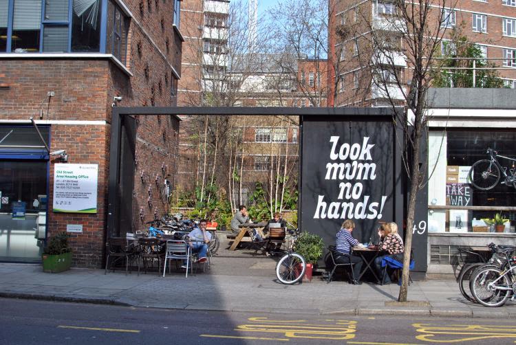 Ostatni, ale najbardziej aktywny. Wiedząc, że może już nie być okazji, wycisnęłyśmy sobotę w Londynie do ostatniej pestki 🙂 Zaczęłyśmy od śniadania w Look Mum No Hands! na Old Street. Kiedyś, kiedyś, przygotowując kilka rzeczy dla klienta, natknęłam się na to rowerowe miejsce, Ania mi o nim przypomniała. Klimat super, kawa do dupy. Beans on…