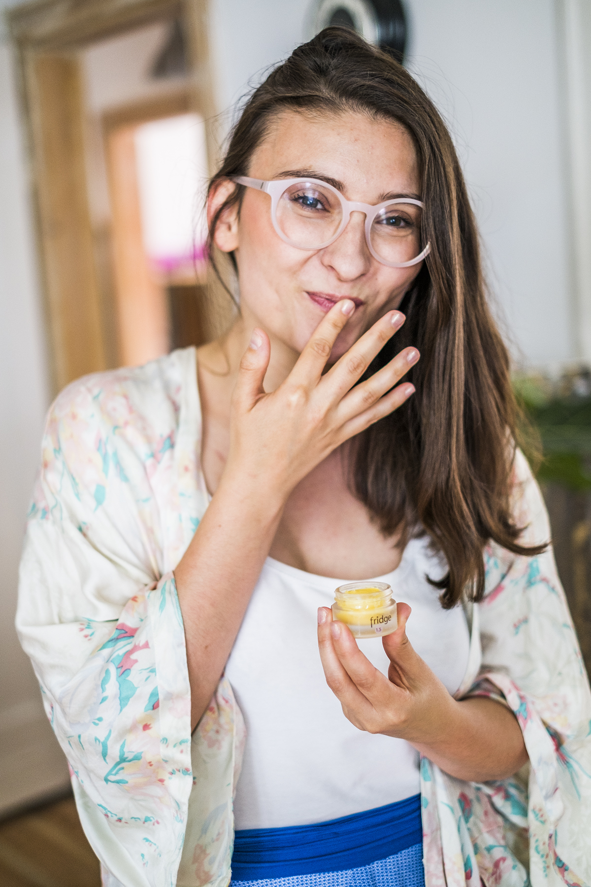 Balsam Fridge 2.4 avocado body siedzi u mnie w lodówce. Po pierwsze – bo musi, takie zalecenie widnieje na szklanym (!!! hello less waste!) opakowaniu, ale też dlatego, że zimny krem na skórze to podwójna przyjemność.