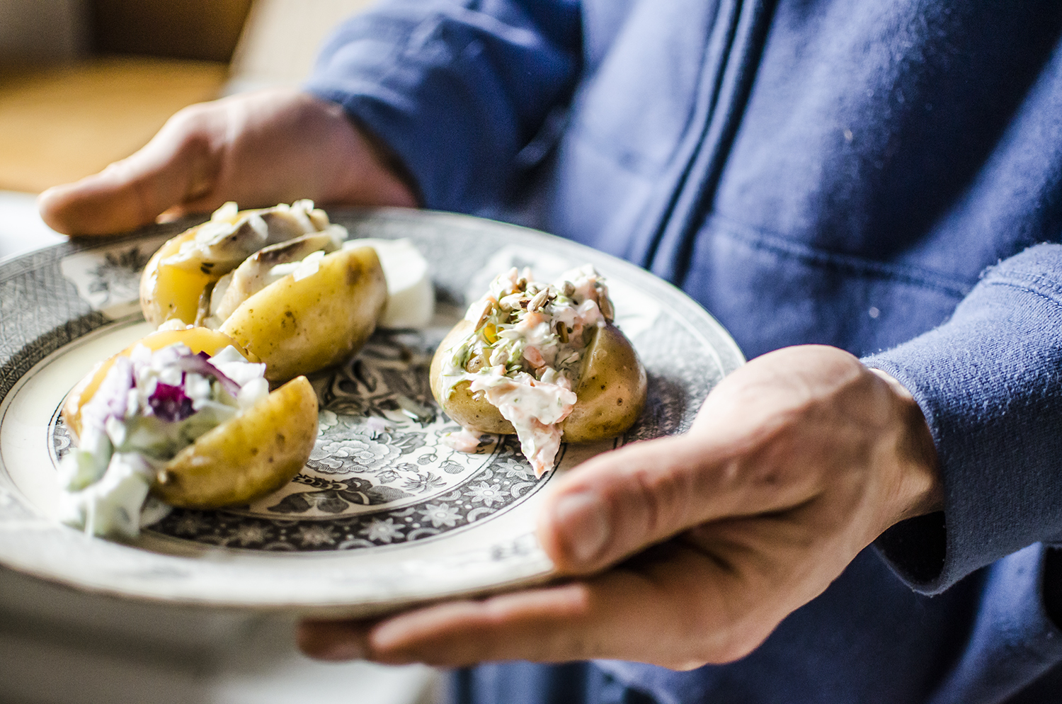 To miała być niedziela z rodzaju ,,otwieram oczy o 9:00, leżę do 19:00 z przerwami na jedzenie”. To miała być niedziela z rodzaju ,,zrób mnie parówki i podaj bułkę z masłem”. Ale w okolicach 11:30 jedna myśl zaczęła wwiercać się w mój mózg. Pieczone ziemniaki. Z czymś. Pieczone ziemniaki z czymś dobrym. Bo wiedz, że ja bardzo lubię jeść. Jedzenie to dla mnie ogromna przyjemność, ukojenie duszy wręcz.