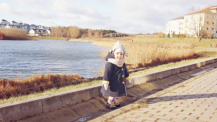 płaszczyk: Pralines | buty: Adidas | bawełniana czapka: H&M | czapka wełniana: Dziecięce Klimaty | getry: Mini Rodini | szalik: hand made