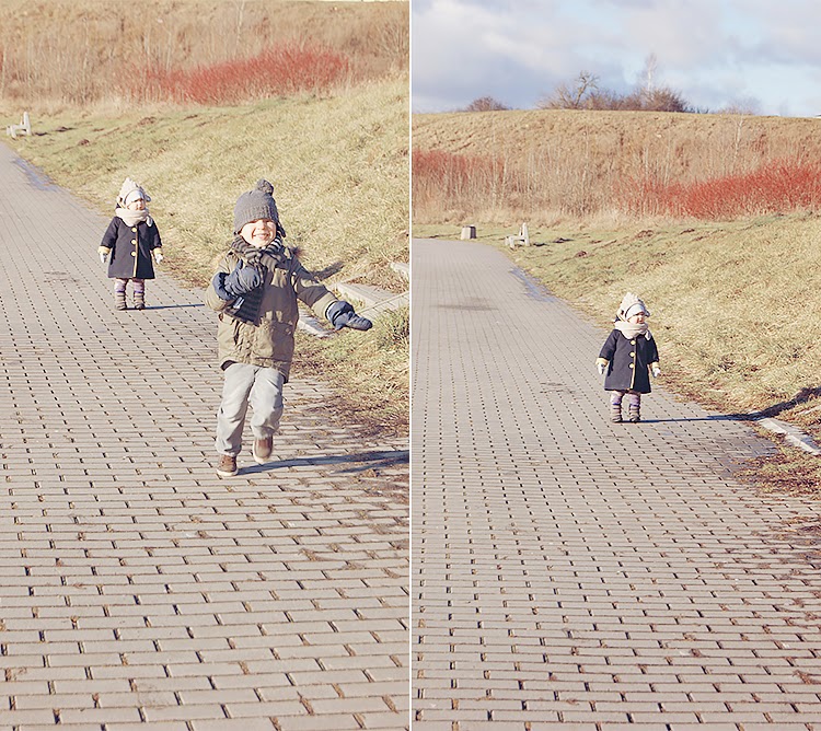 Ale co tam, nic to. Pyza na spacerze była wzorem dzielności i męstwa, szła, dreptała, choć łzy z oczy kapały na zmianę z gilami z nosa. Chichocząc próbowała gonić Nico i Matteo, oczywiście bezskutecznie, bo moda syberyjska krępuje ruchy. Ale wtedy sobie po raz kolejny uświadomiłam, że Ina tak szybko rośnie. Chwila moment. Nie do zatrzymania jest machina piekielna, ale ciesze się na te zmiany przeogromnie. Nie mogę się doczekać jeszcze lepszego kontaktu, bardziej zaawansowanych dialogów, wspólnych ,,spraw” tylko dla wtajemniczonych. Ina, słyszysz? Czekam na Ciebie! 🙂